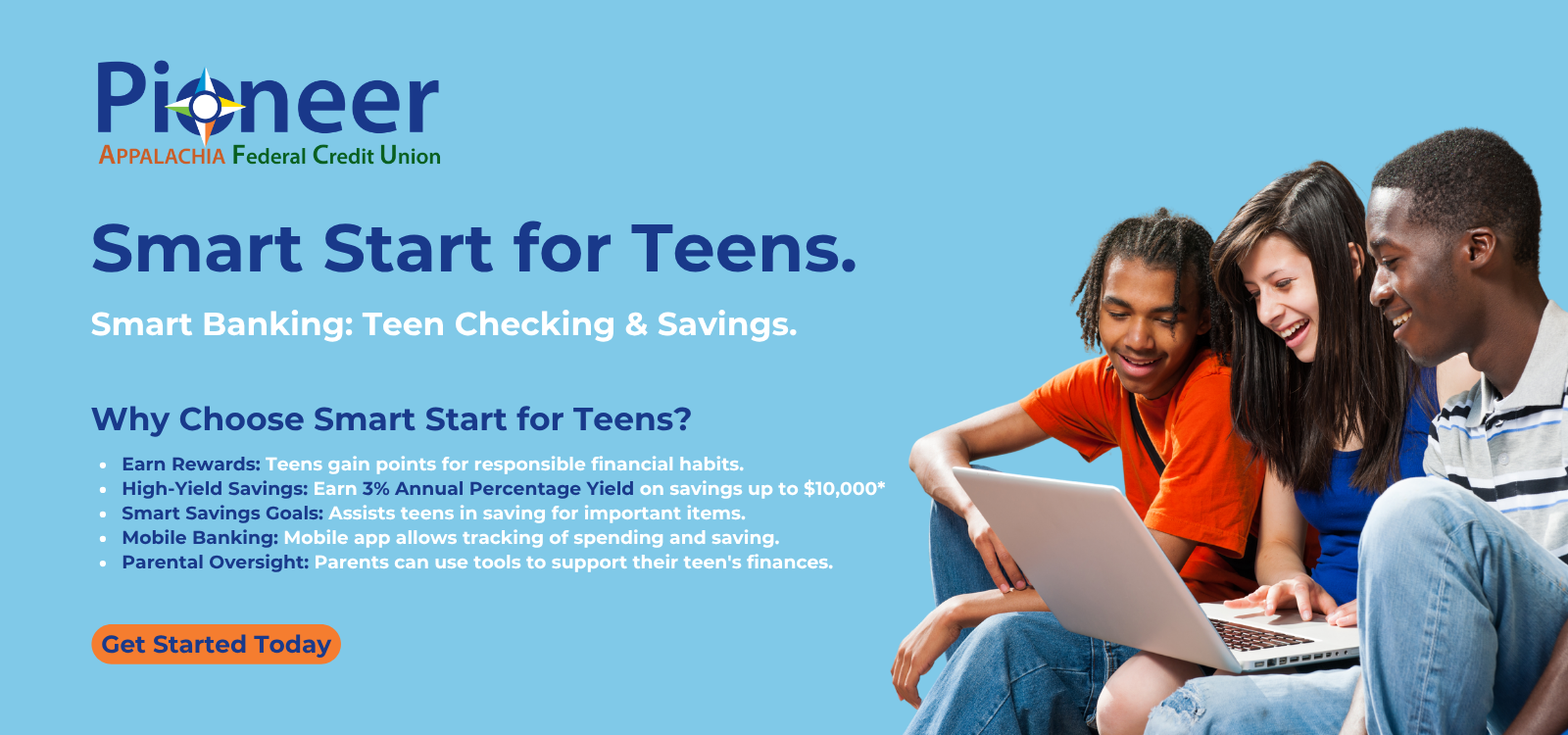 A: Yes, a parent or legal guardian is required to jointly open the account. If the teen’s parent is an existing Pioneer AFCU member, they can open the Smart Start account for their teen.